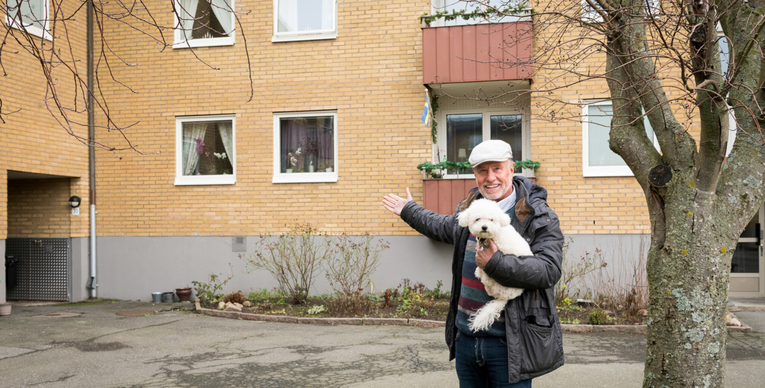 Lägenheten är belägen 1,5 trappa upp i huset med fint utsiktsläge från alla fönster.