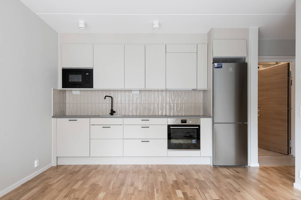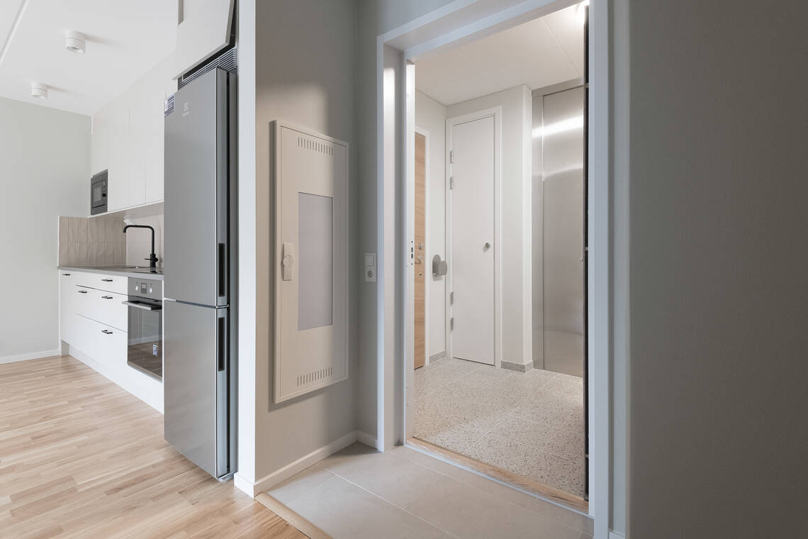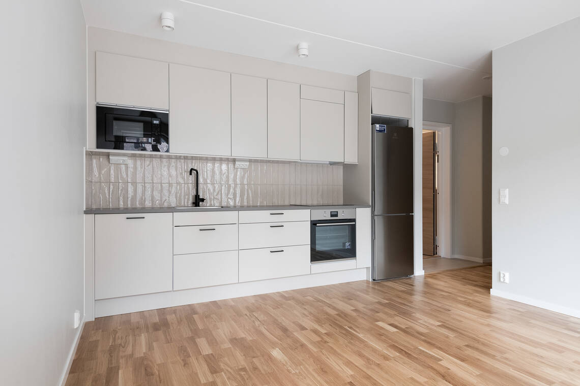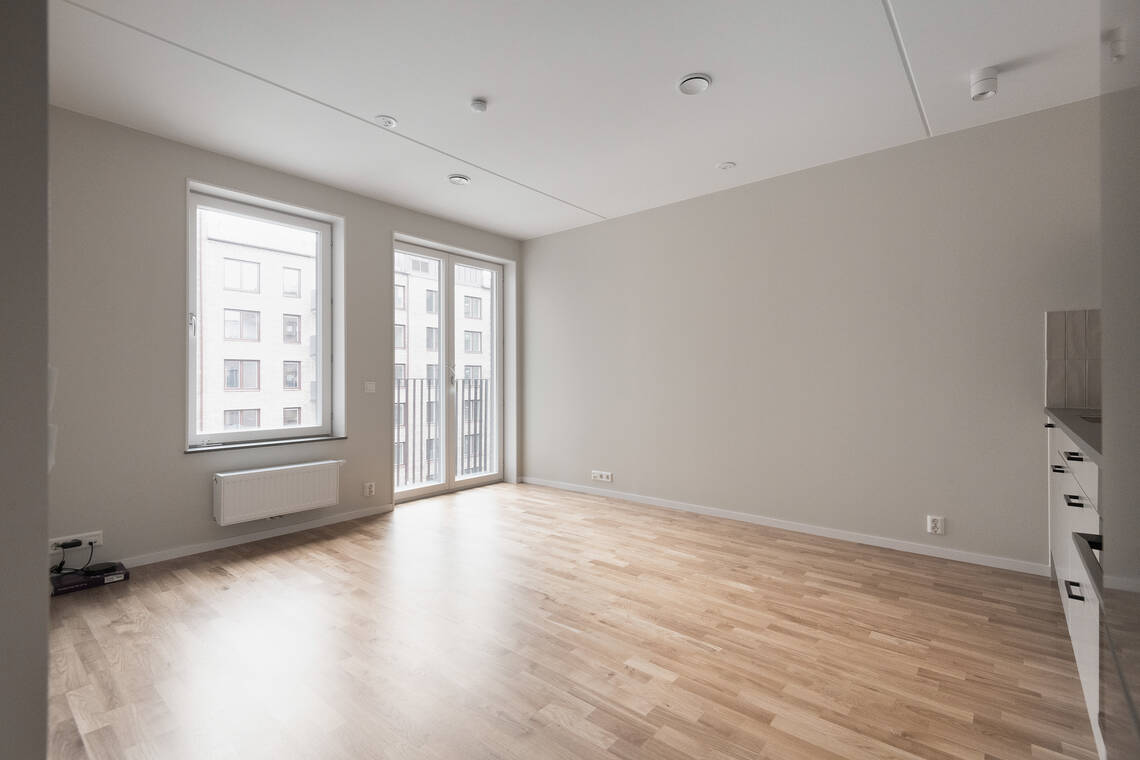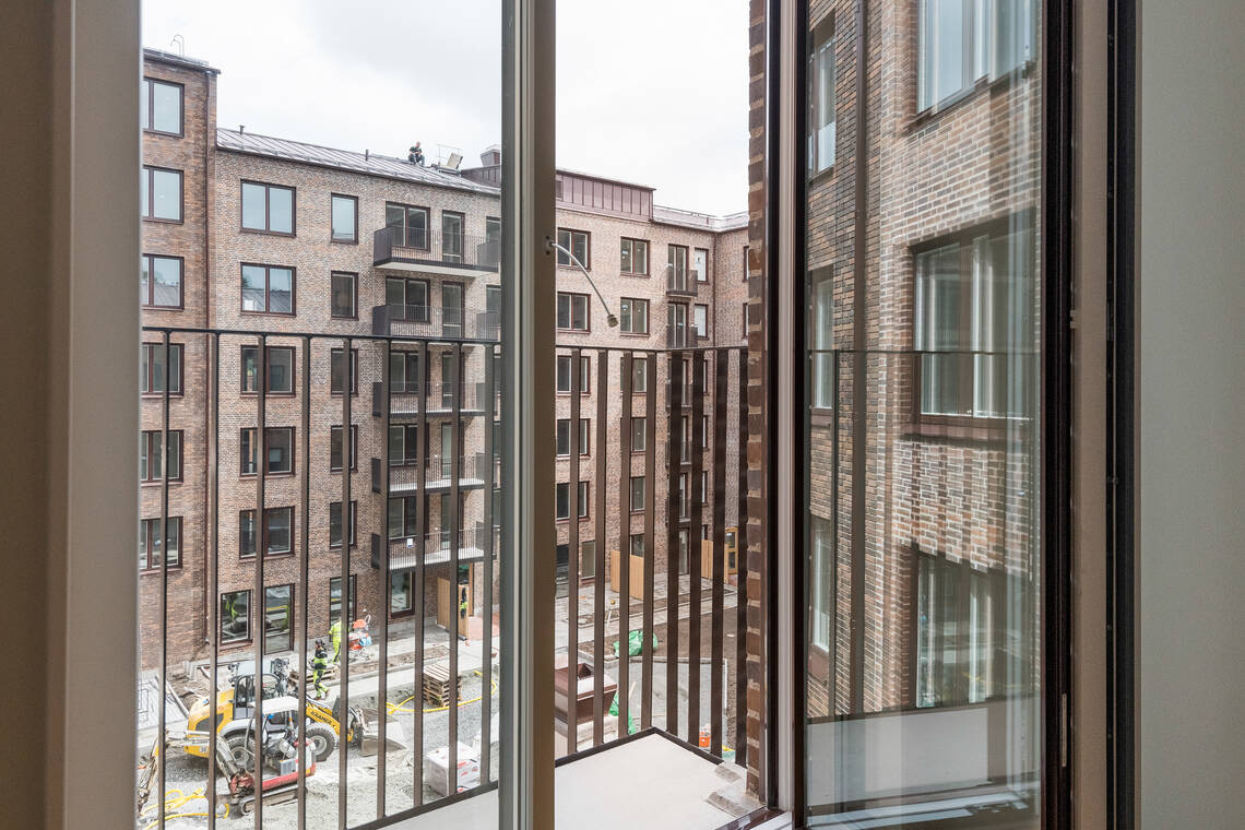 Lägenheterna i området färdigställdes 2024 och inflyttning påbörjades nu i maj. Badrum och kök är utrustade med högkvalitativa vitvaror och material med både diskmaskin i kök och kombitvättmaskin i badrum. Med en charmig fransk balkong mot innegården och det generösa ljusinsläpp inges känsla av öppenhet.