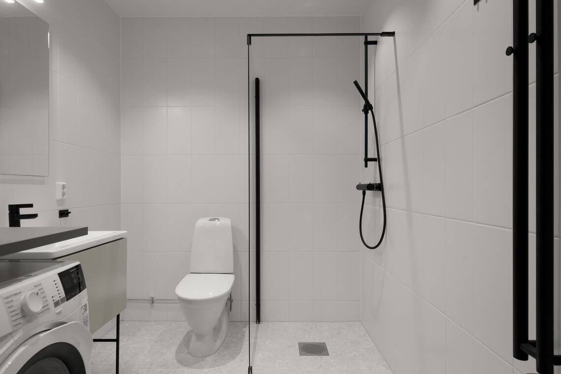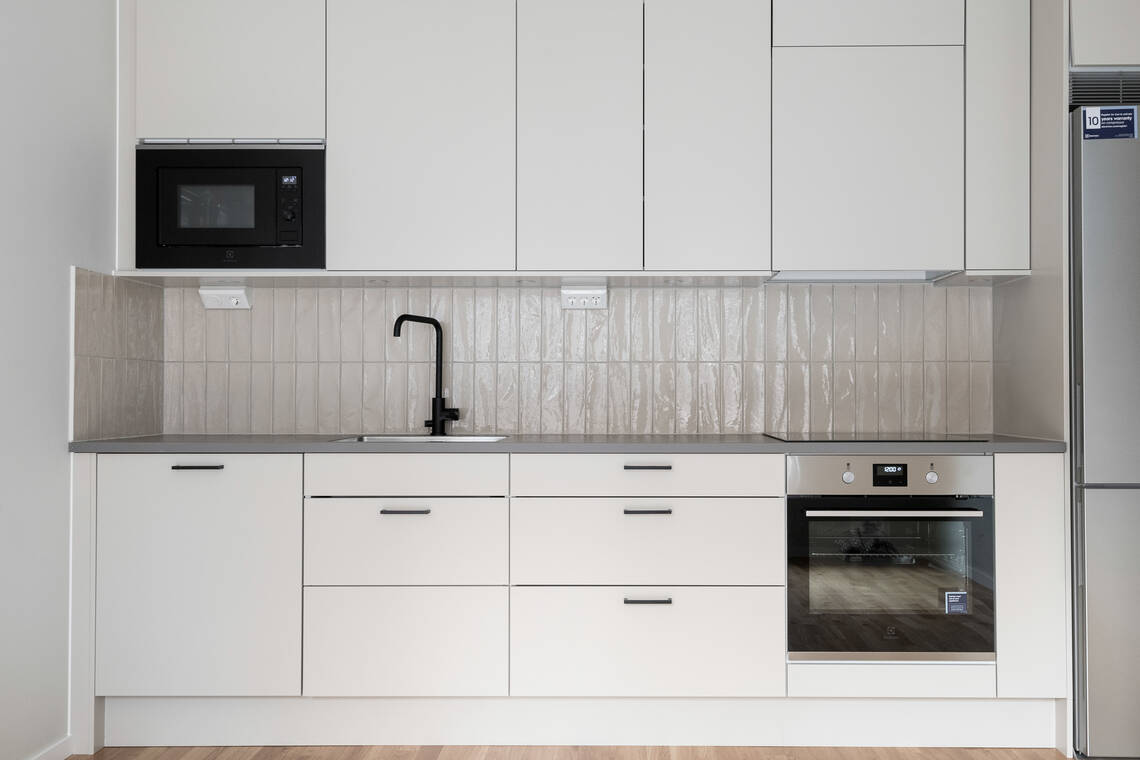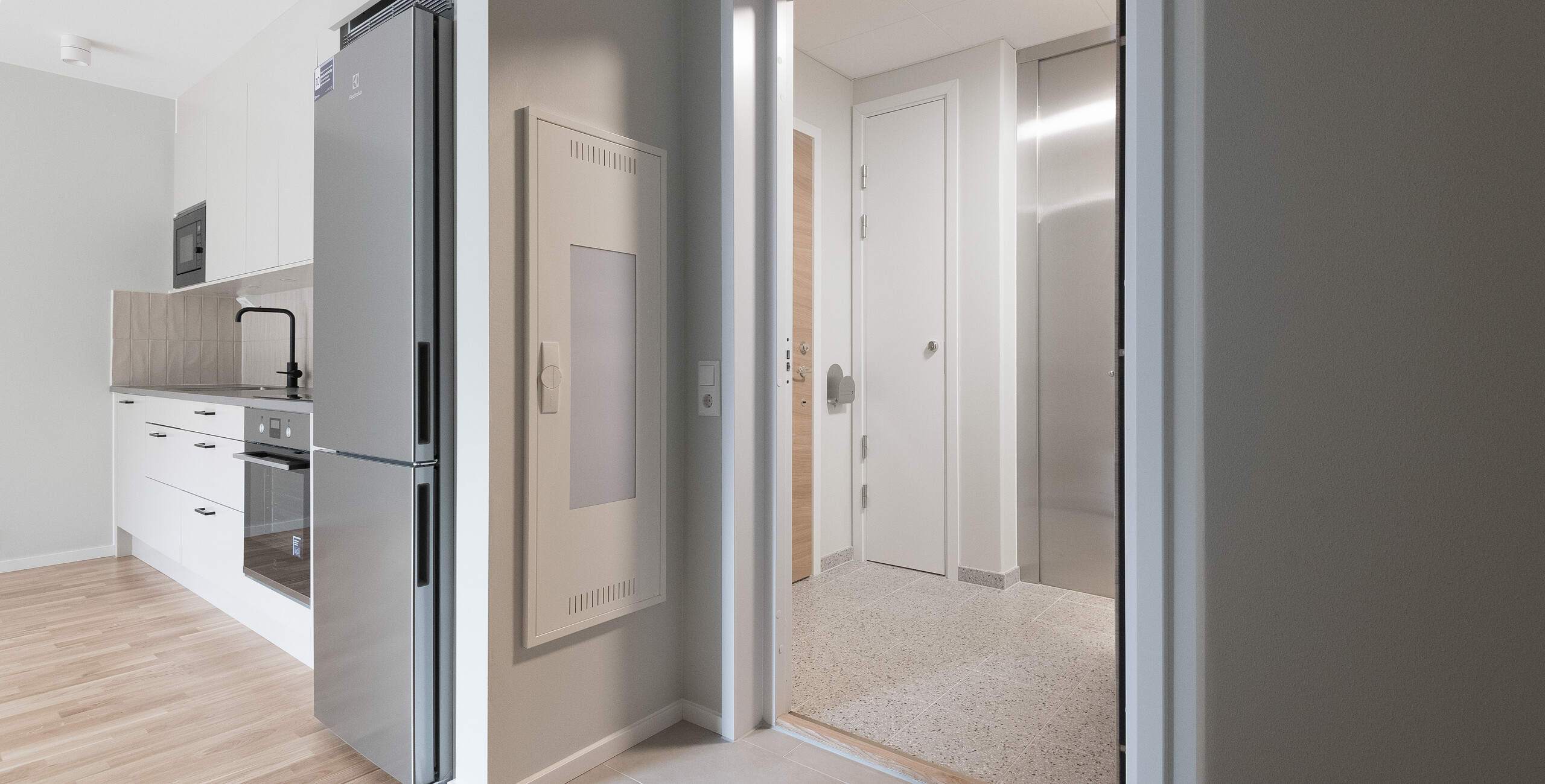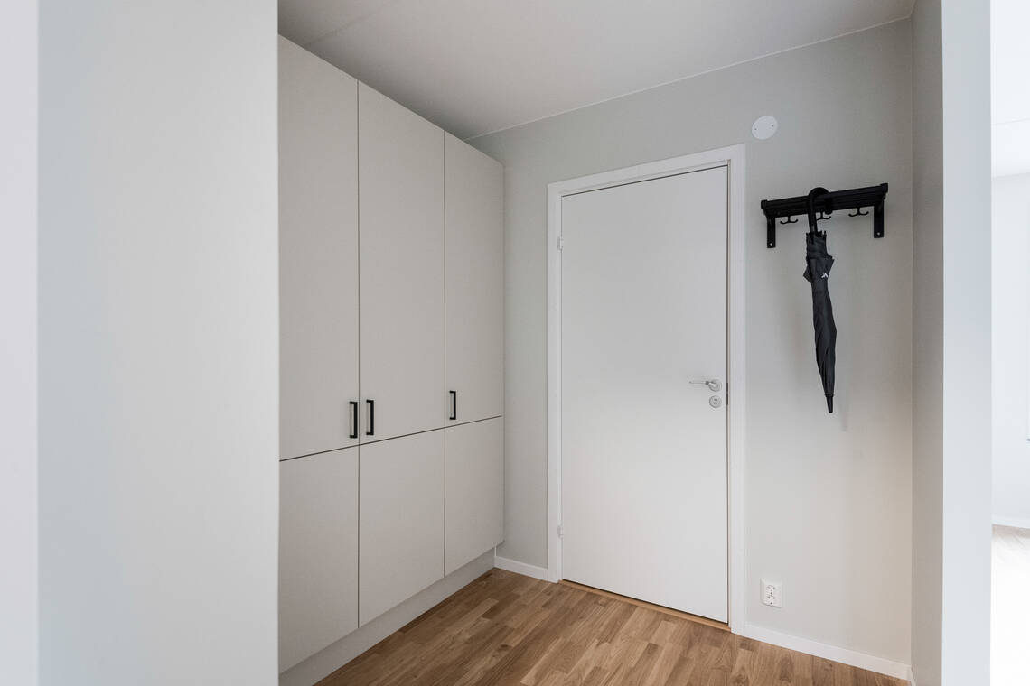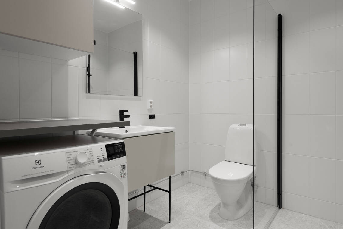Lägenheterna i området färdigställdes 2024 och inflyttning påbörjades nu i maj. Badrum och kök är utrustade med högkvalitativa vitvaror och material med både diskmaskin i kök och kombitvättmaskin i badrum. Med en charmig fransk balkong mot innegården och det generösa ljusinsläpp inges känsla av öppenhet.