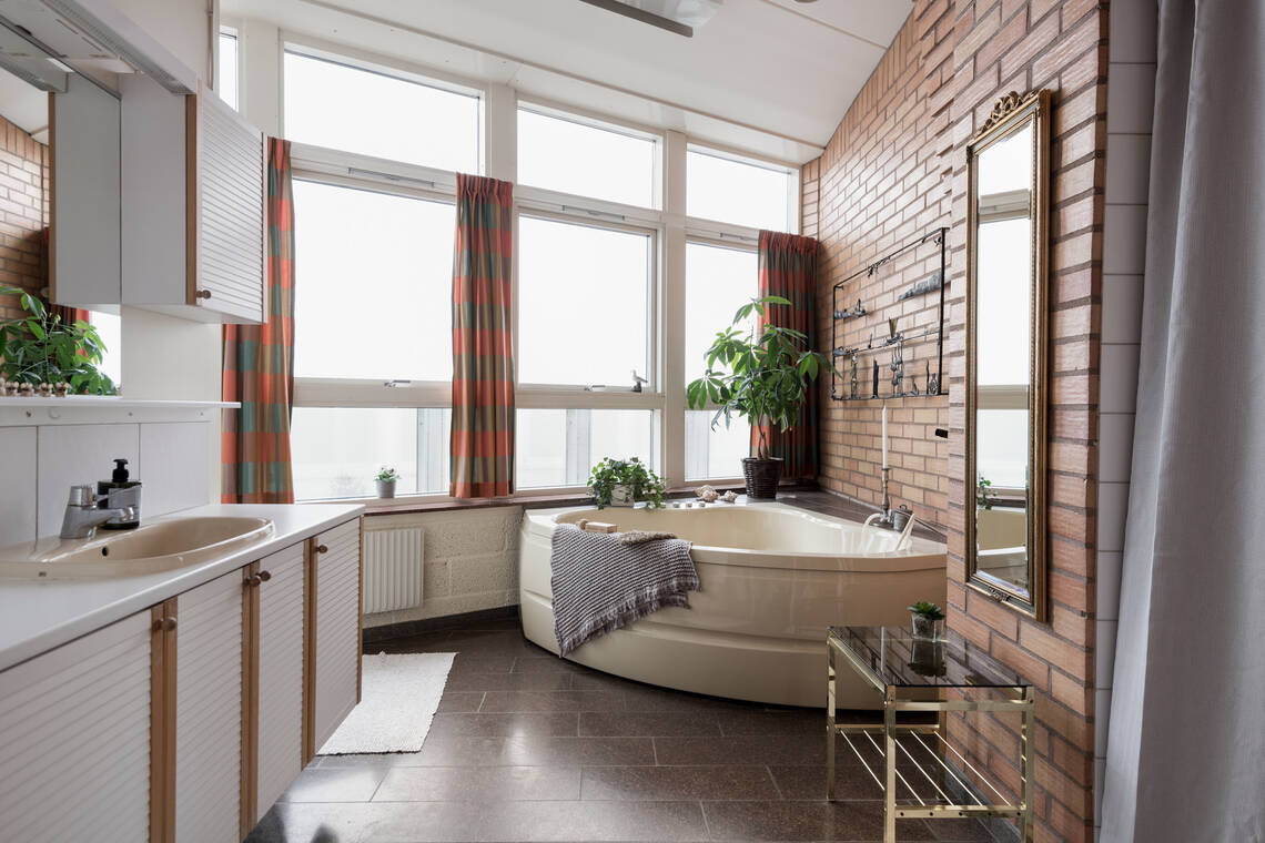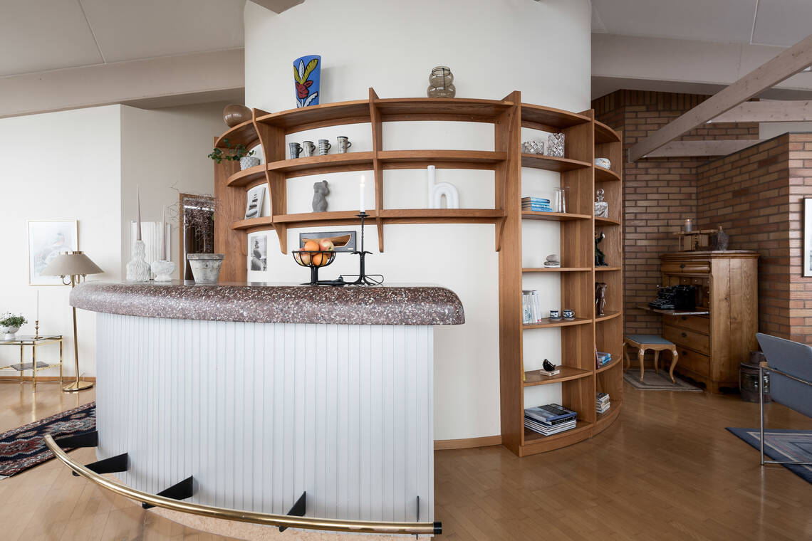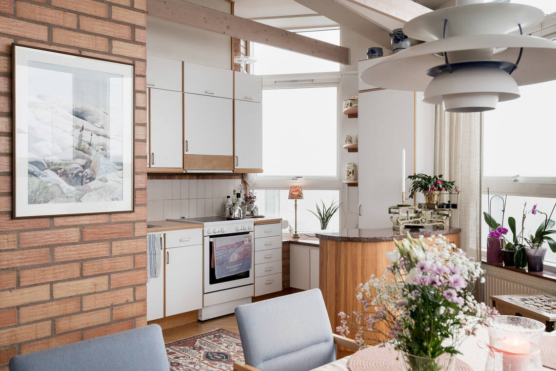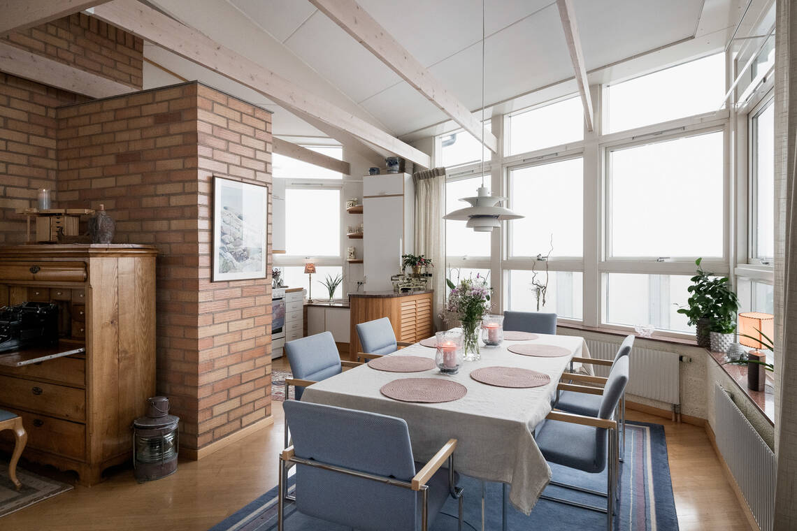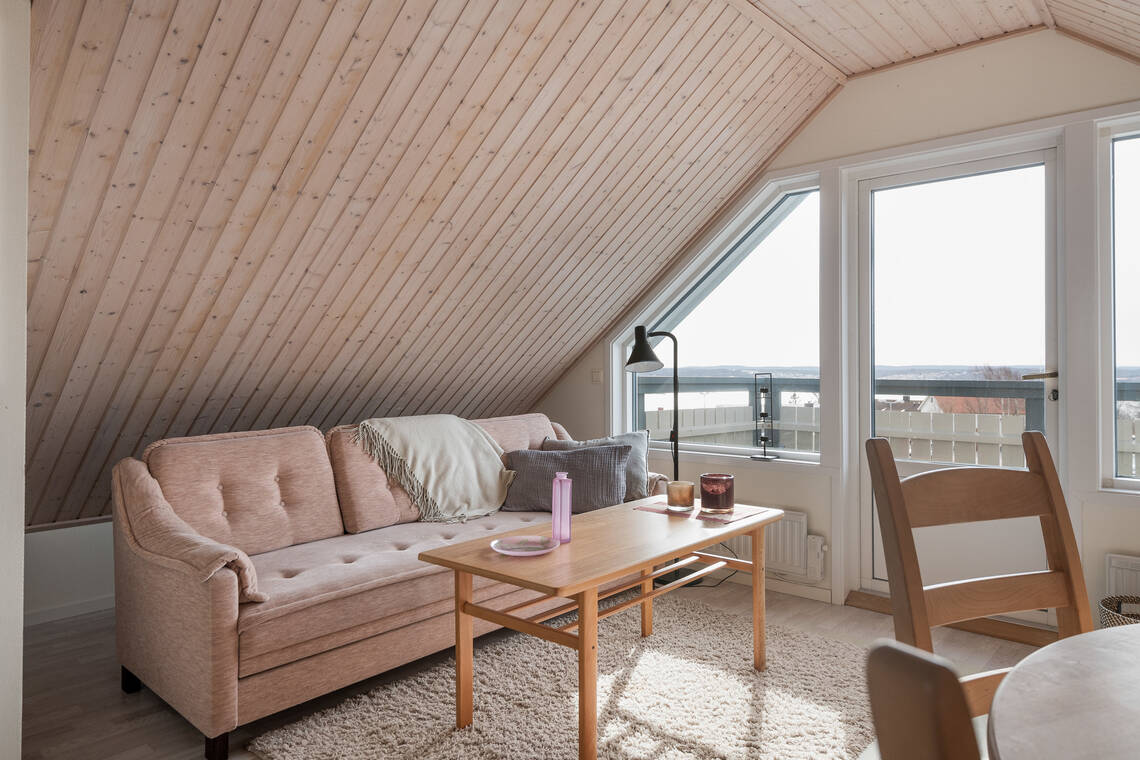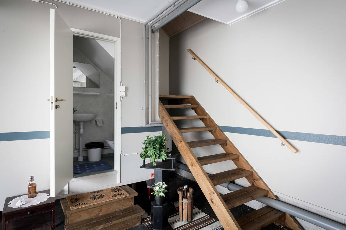 På tredje våningen finns en fräck lägenhet om 130 kvm boarea med sällskapsutrymmen, kök med matsal, 2 sovrum, badrum, bastu och dusch, utgång till balkong runt hela tornet med vidsträckt utsikt.